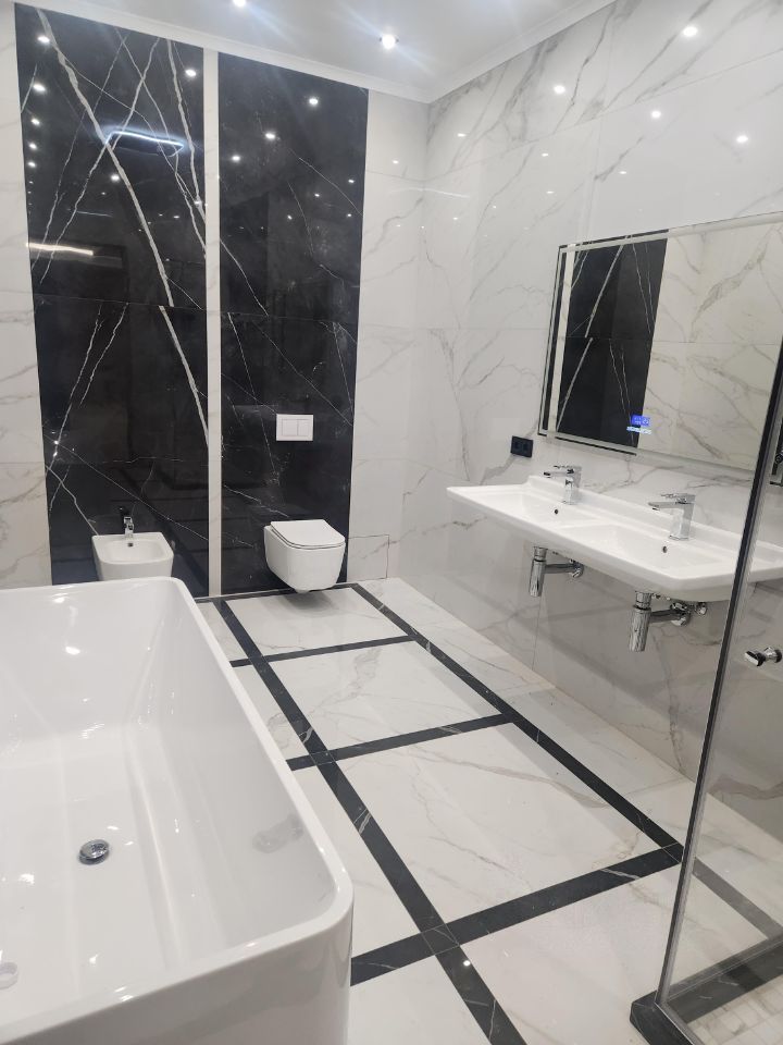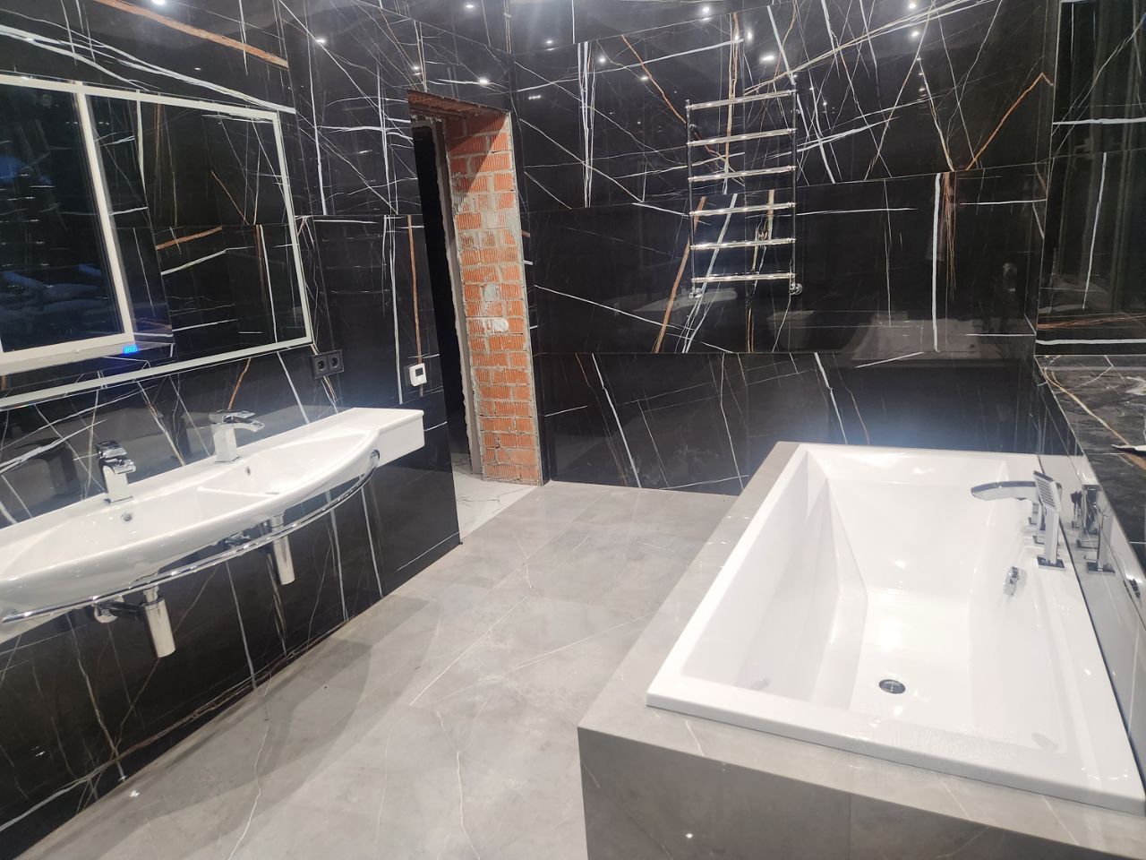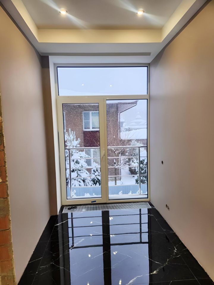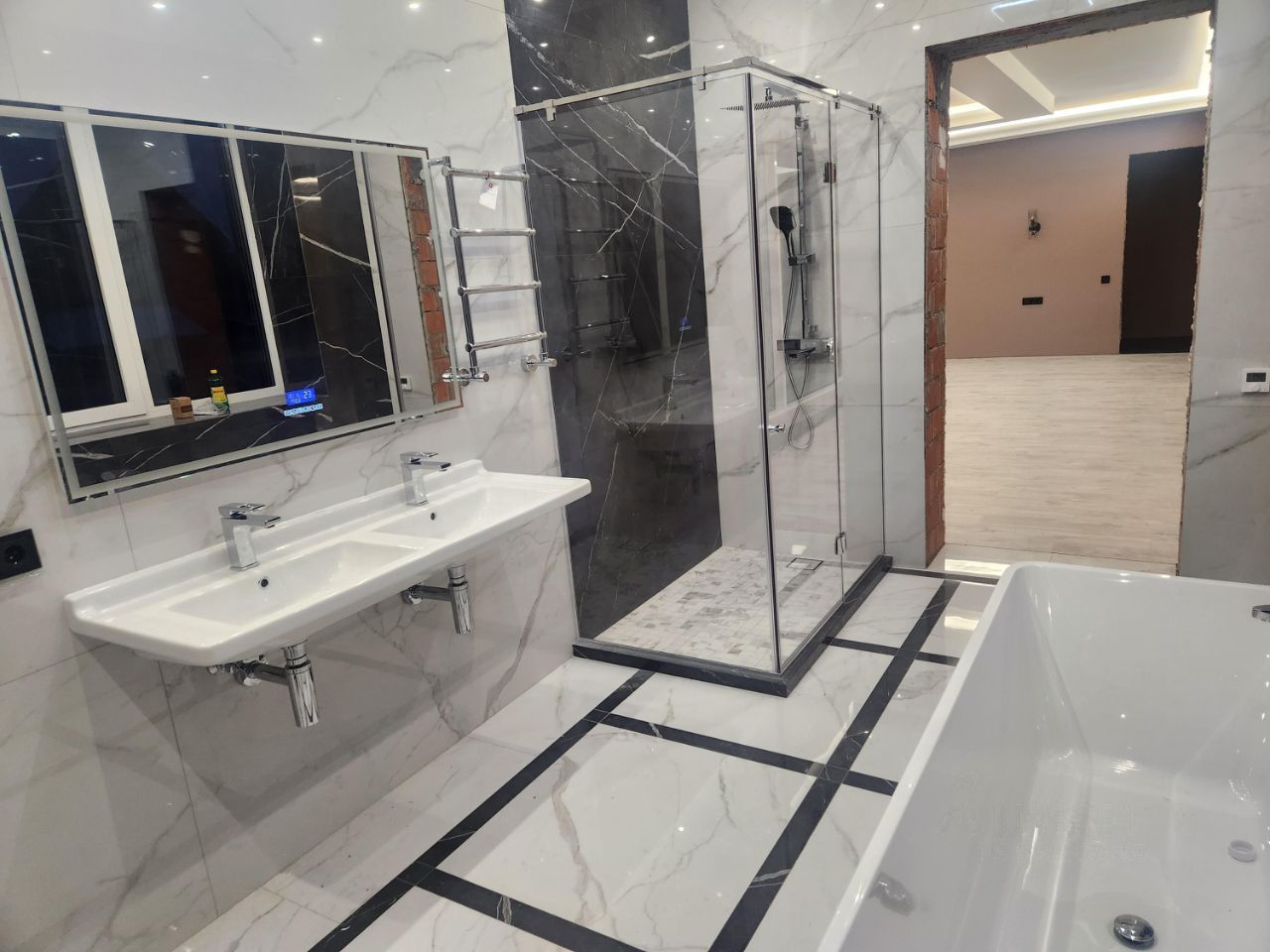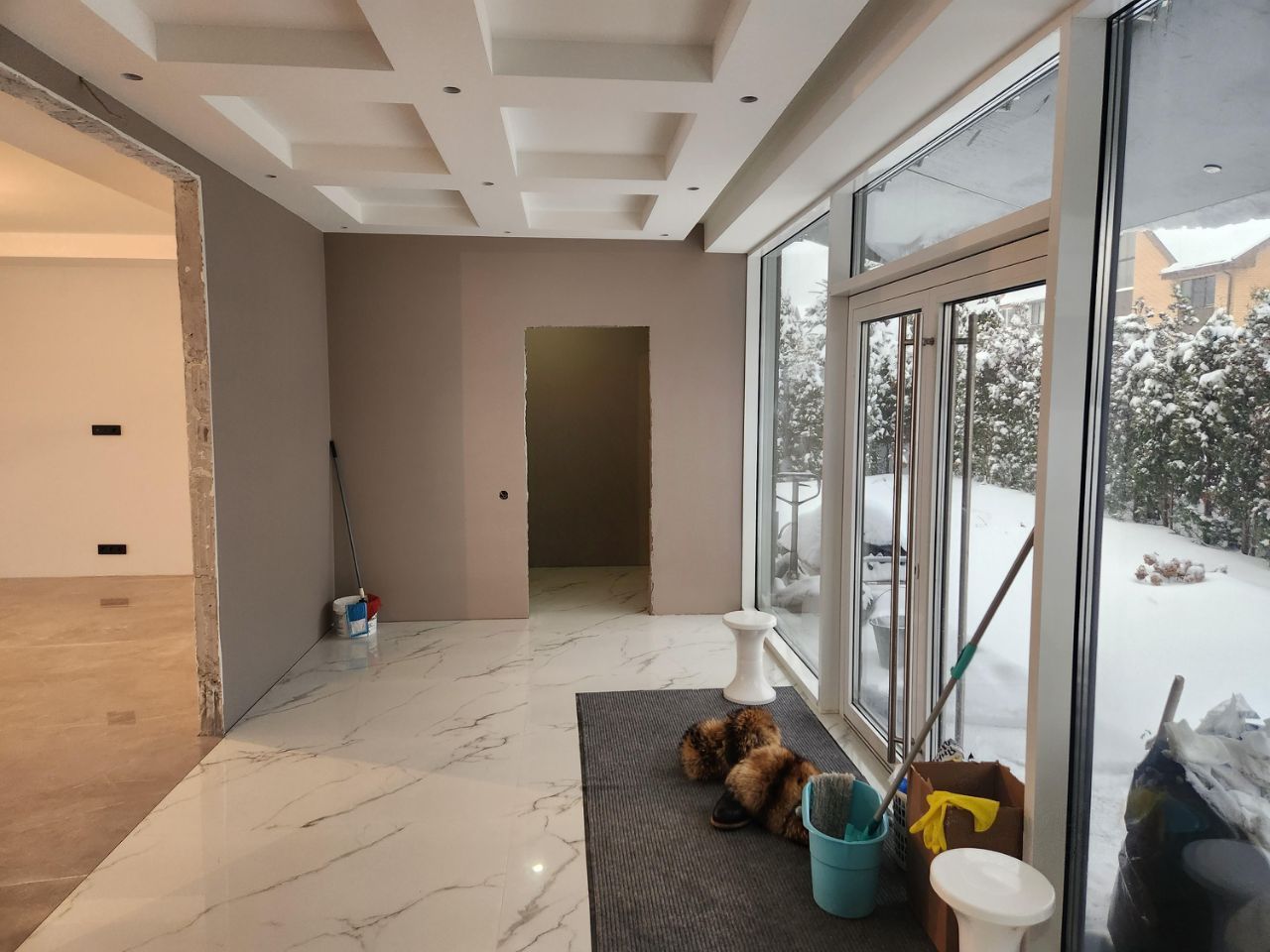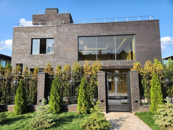 Коттедж 380 кв. м «под ключ» в закрытом охраняемом коттеджном поселке Новое Глаголево. Дом 2022 года постройки из кирпича с монолитными перекрытиями, фундамент монолитная плита. Дом утеплен и облицован качественным облицовочным кирпичом Мангейм Шварц., все потолки гипсокартон в два слоя, (все этапы работ в фотоотчете имеются). Стены покрашены, сантехника полностью установлена, уложено напольное покрытие, двери заказаны. Все освещение и люстры устанавливаются. Дом премиум класса, заканчивается финишная отделка. Дом в два этажа и выходом на эксплуатируемую плоскую кровлю, где будет расположена зона отдыха с мангальной зоной и зоной отдыха с лежаками и душем. В доме пять спален, одна из которых имеет площадь 60 метров со своим сан узлом и двумя гардеробными комнатами, панорамное остекление.