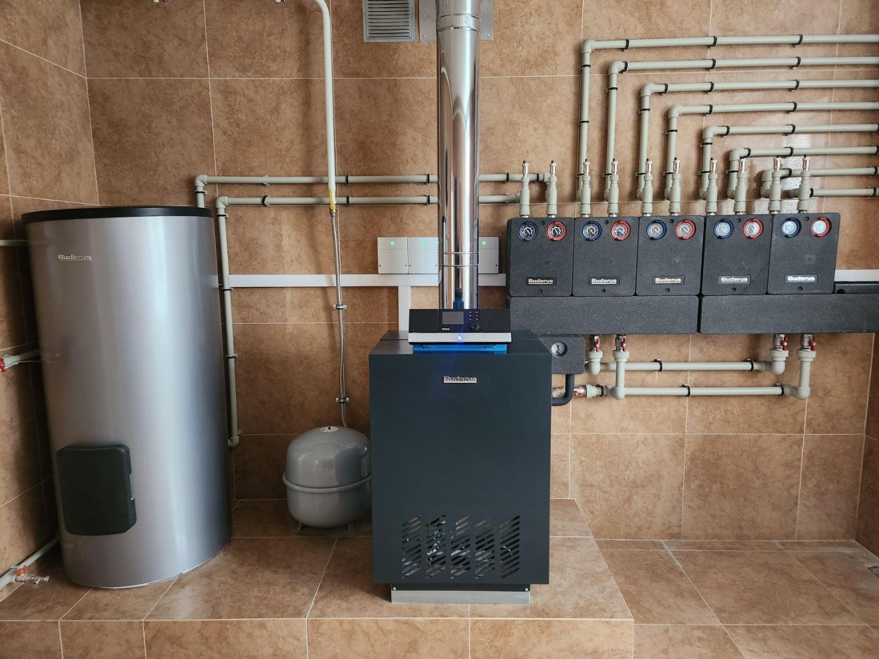 Коммуникации: магистральный газ, центральные водоснабжение и канализация, теплые полы. В доме сделана система кондиционирования всех комнат (все оборудование установлено). Вся система отопления фирма Будерос. В доме все коммуникации включая очистку воды и интернет. Устанавливается система видео наблюдения в доме и на участке (11 камер).
