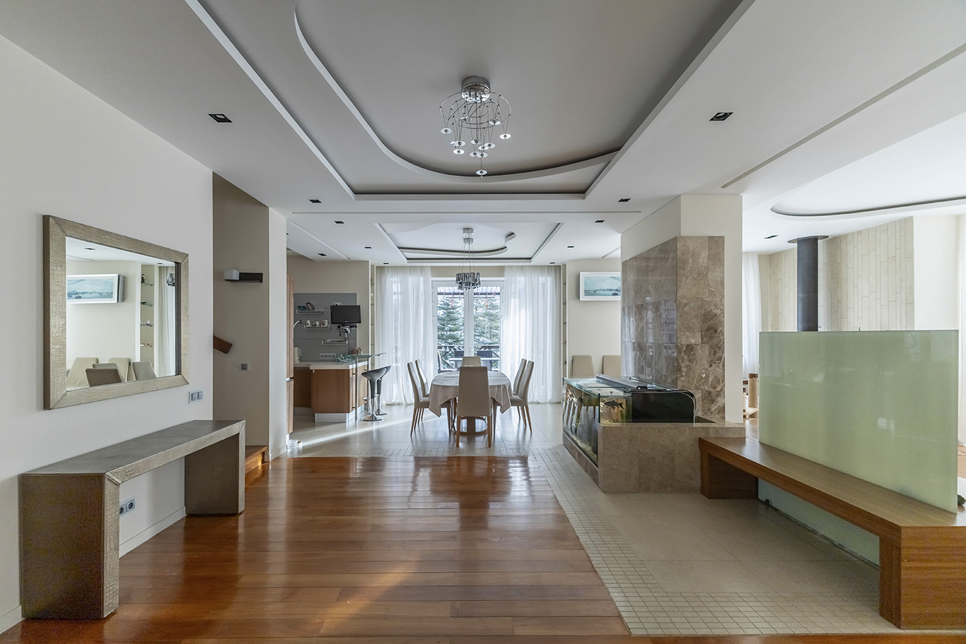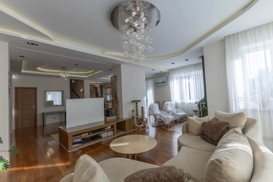 1 этаж: прихожая, кабинет, гардеробная, кухня – гостиная с выходом на террасу, с/узел, гараж на 2 м/м, котельная (котел Buderus, бойлер, система водоочистки);