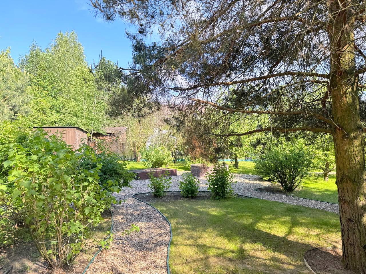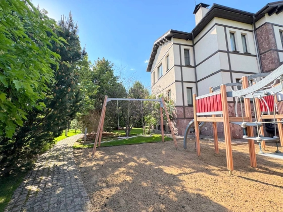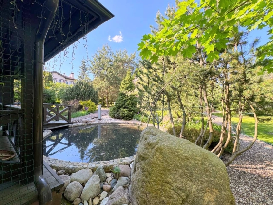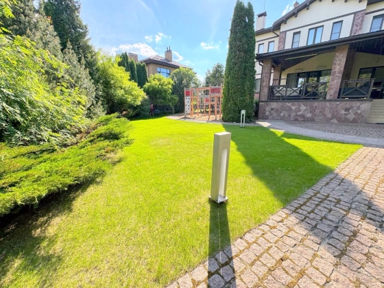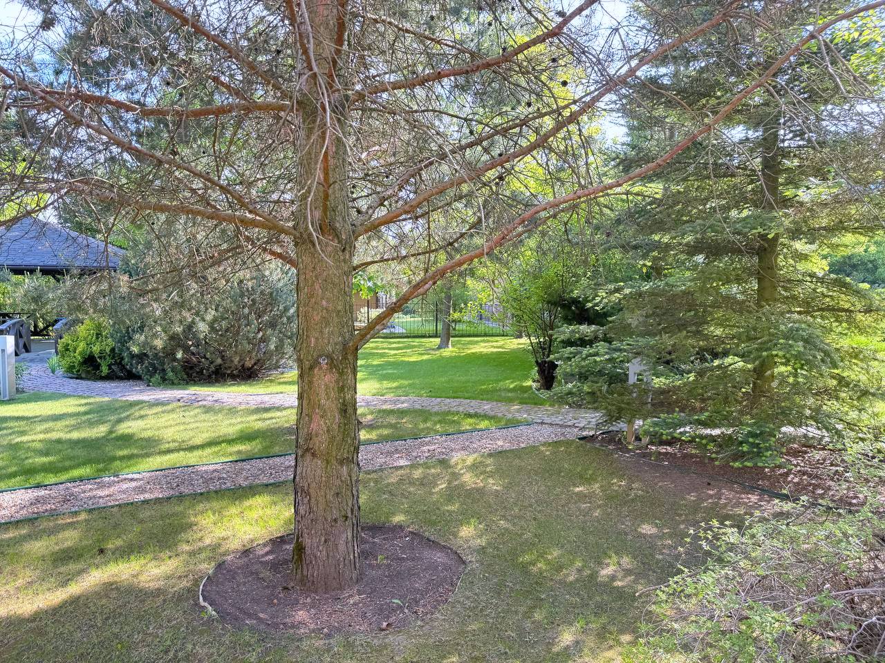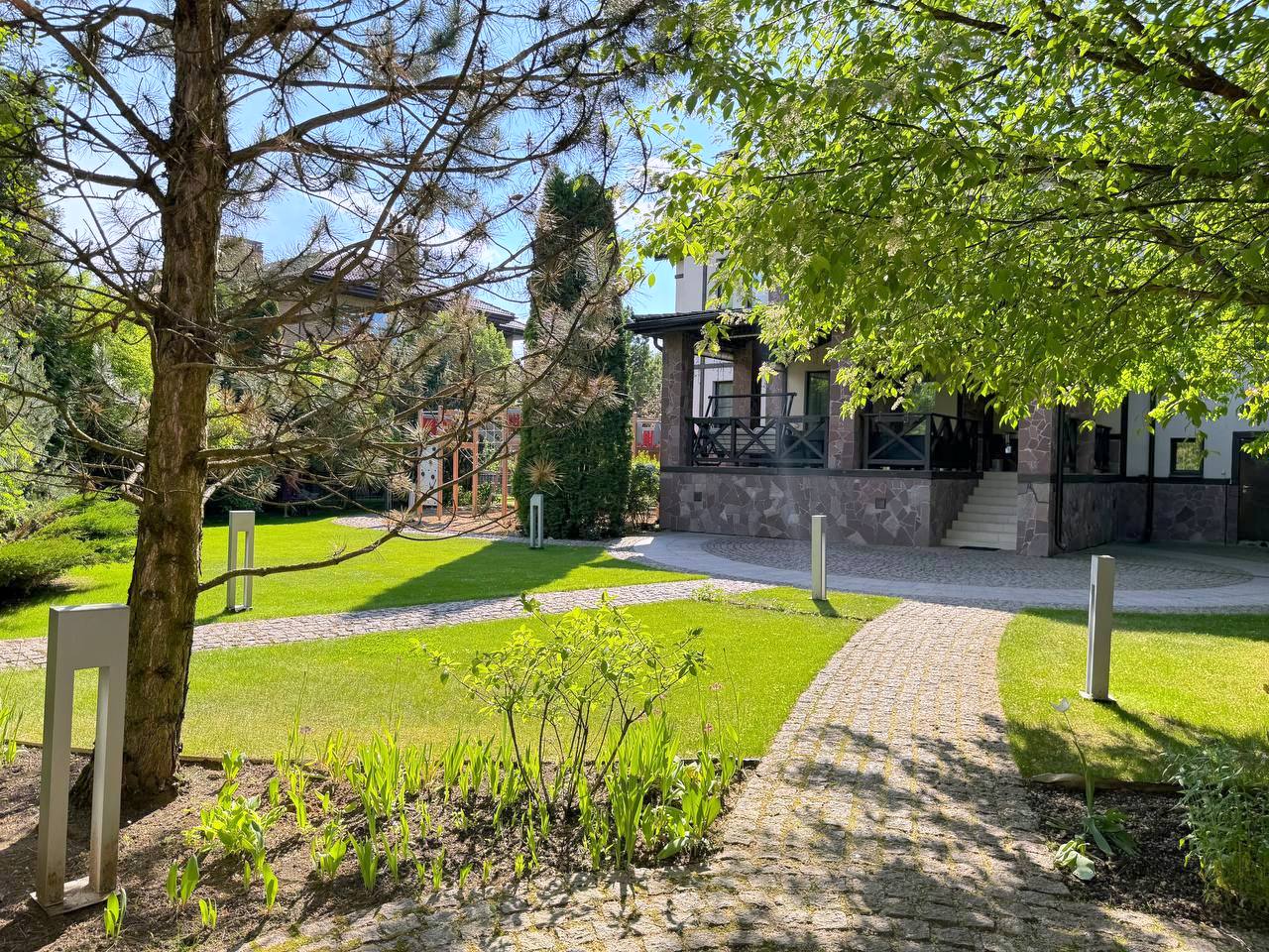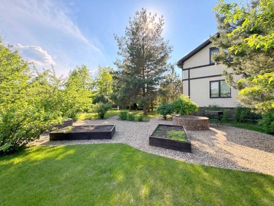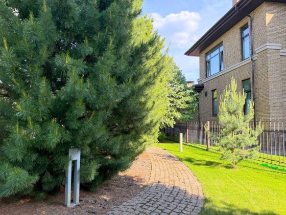 Участок 25 соток с ландшафтным дизайном. На участке дом для прислуги 75 кв. м, 2 этажный, из кирпича, 2 спальни; просторная беседка; детский спортивный городок;. дорожки брусчатка из гранита; автополив; пруд с мостиком; множество хвойных, декоративных и плодовых деревьев и кустарников; мини огород.