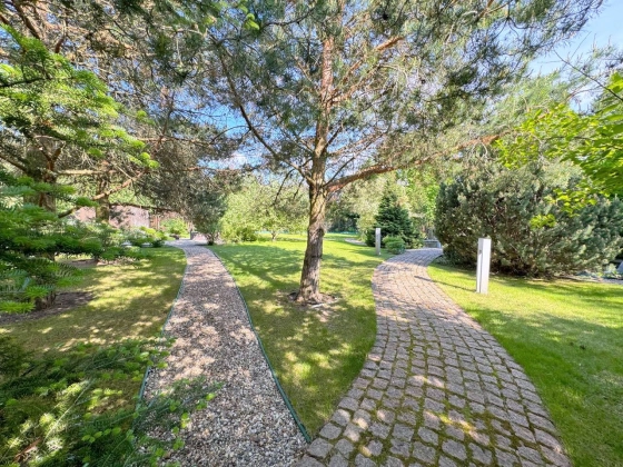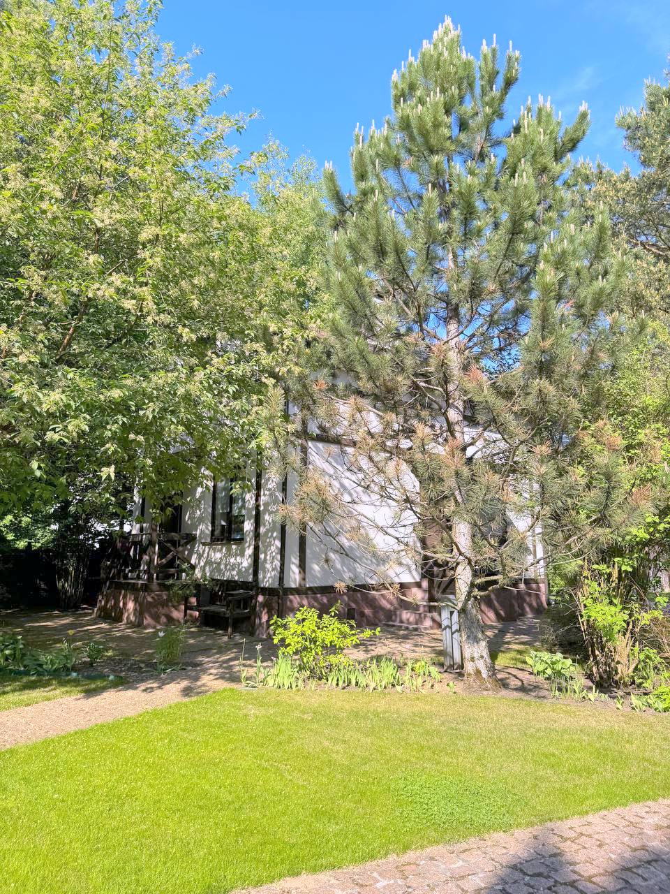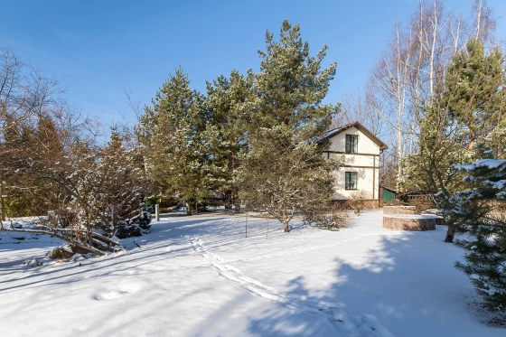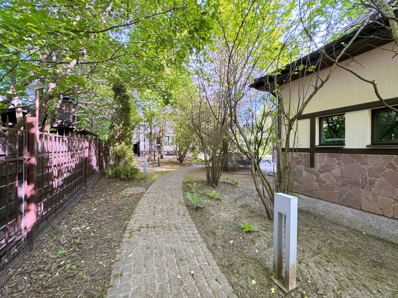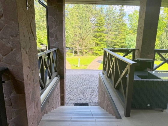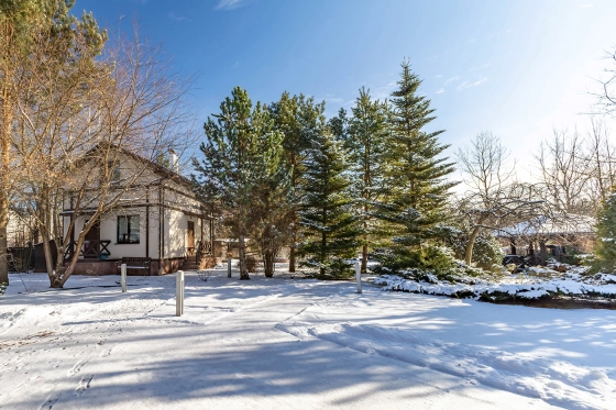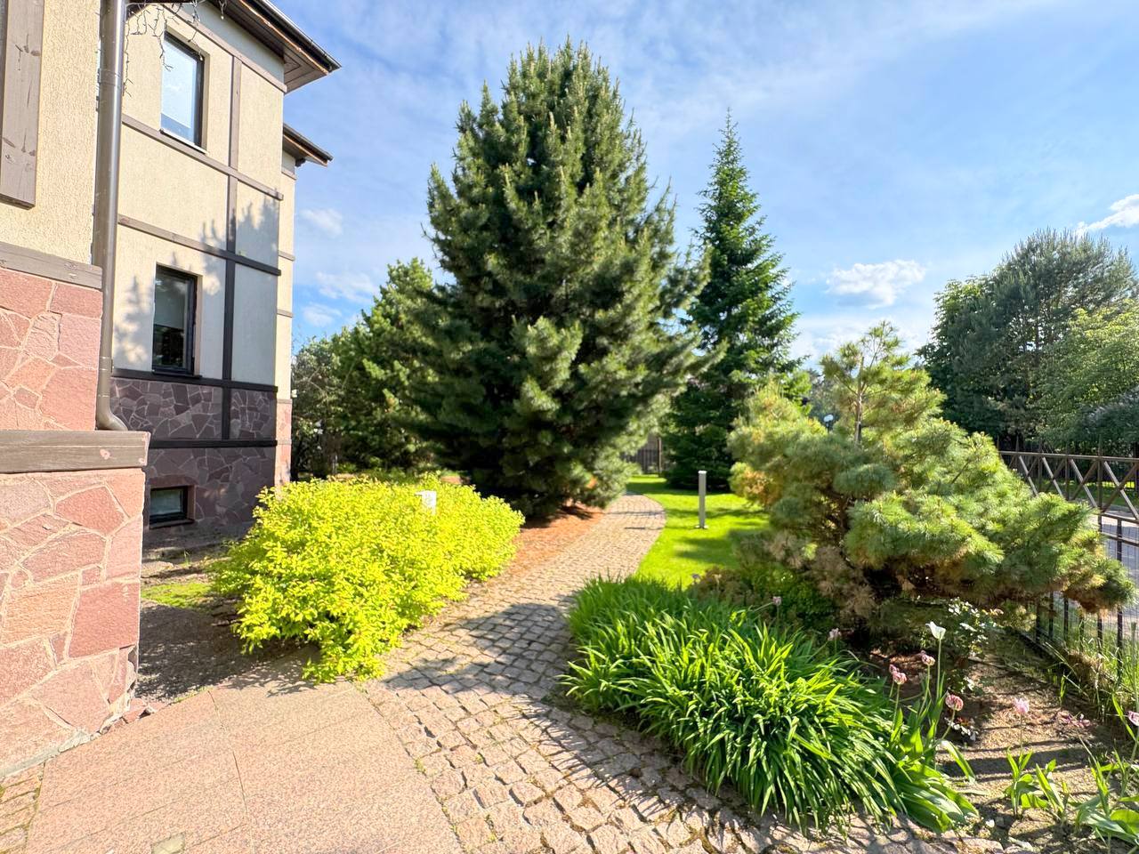 Участок 25 соток с ландшафтным дизайном. На участке дом для прислуги 75 кв. м, 2 этажный, из кирпича, 2 спальни; просторная беседка; детский спортивный городок;. дорожки брусчатка из гранита; автополив; пруд с мостиком; множество хвойных, декоративных и плодовых деревьев и кустарников; мини огород.