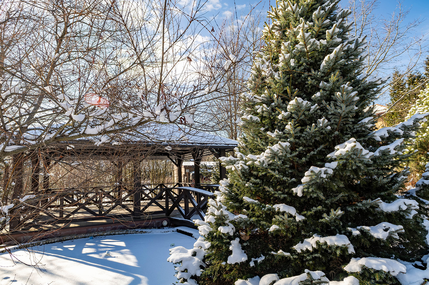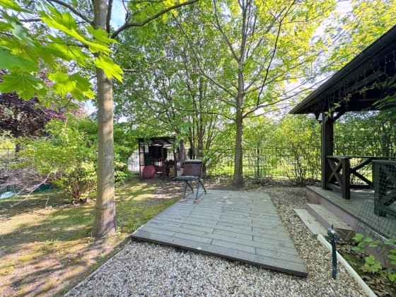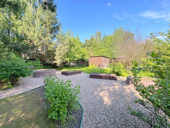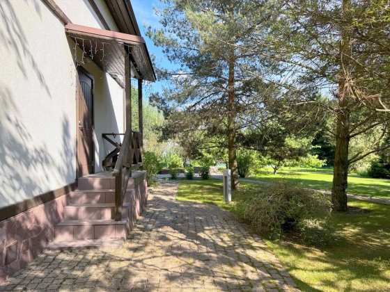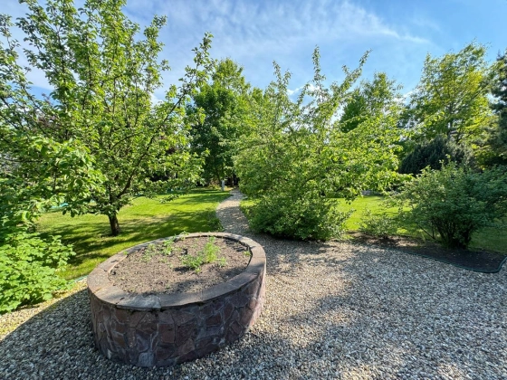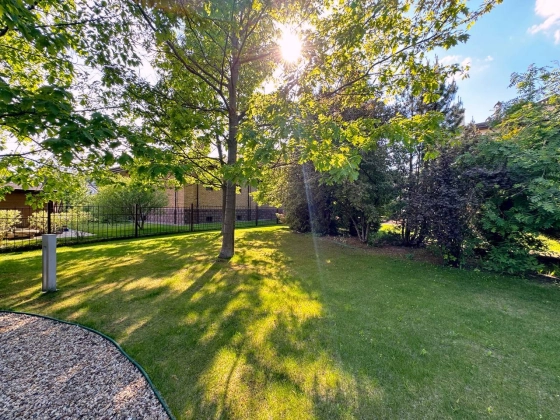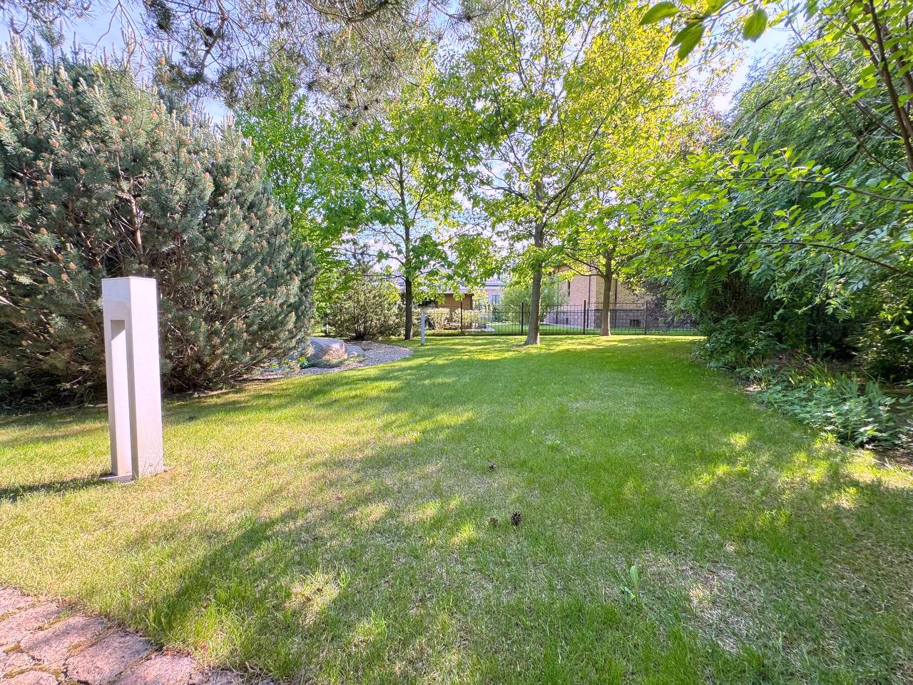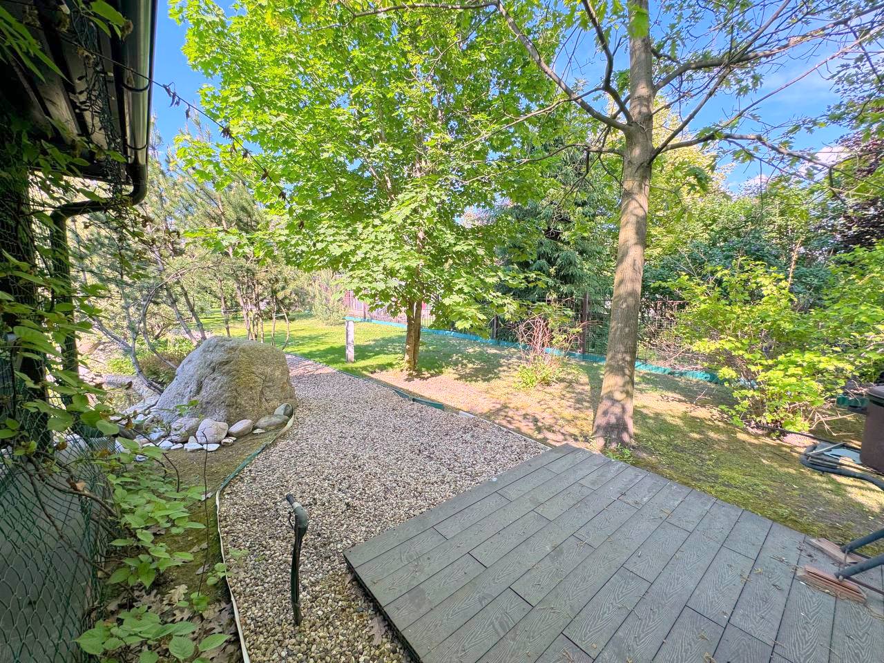 Участок 25 соток с ландшафтным дизайном. На участке дом для прислуги 75 кв. м, 2 этажный, из кирпича, 2 спальни; просторная беседка; детский спортивный городок;. дорожки брусчатка из гранита; автополив; пруд с мостиком; множество хвойных, декоративных и плодовых деревьев и кустарников; мини огород.