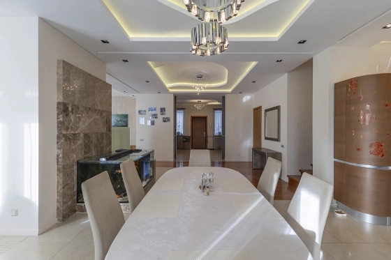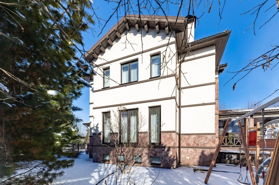 Коттедж 460 кв. м «под ключ» в закрытом охраняемом коттеджном поселке Европа-1 (Зеленый Вктер-1). Дом 2008 года постройки из кирпича с железобетонными перекрытиями. Тёплые полы, паркетная доска, уютное освещение помещений с разными сценариями, множество розеток. 3 этажа. Меблирован, оборудован бытовой техникой, полностью готов к проживани.