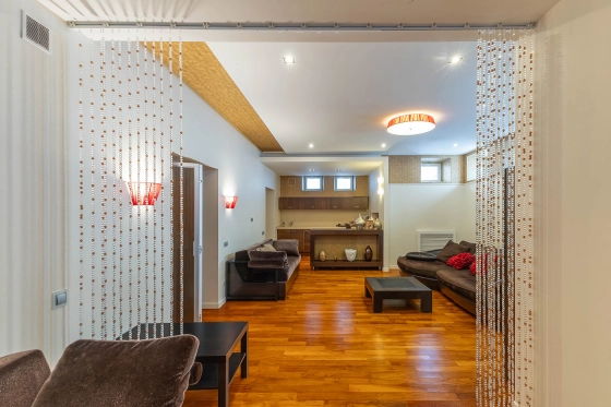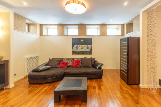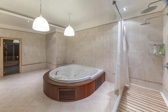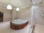 Цокольный этаж - гостевая спальня, с/у душем, комната отдыха с джакузи, сауна, душевая, кладовая.