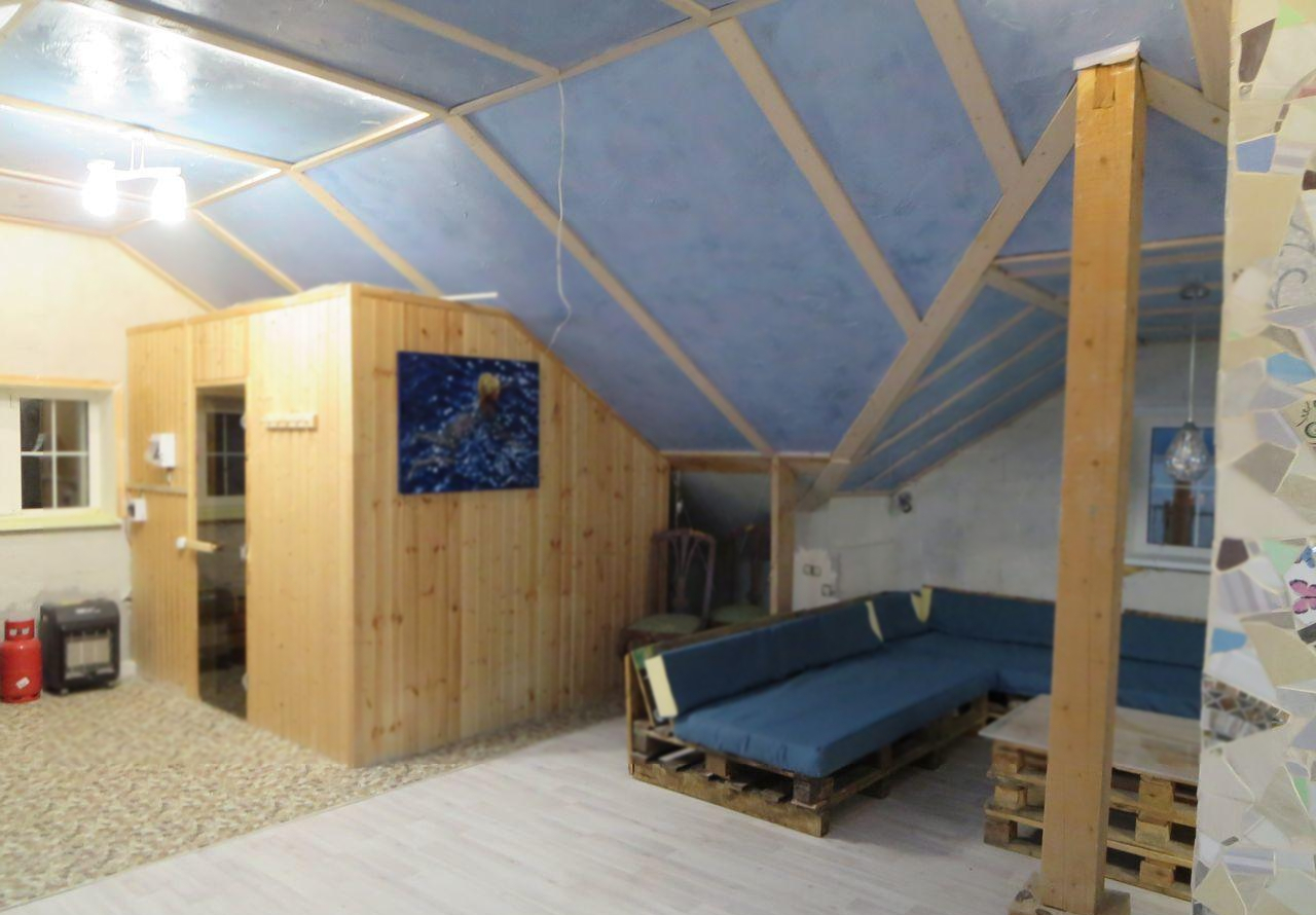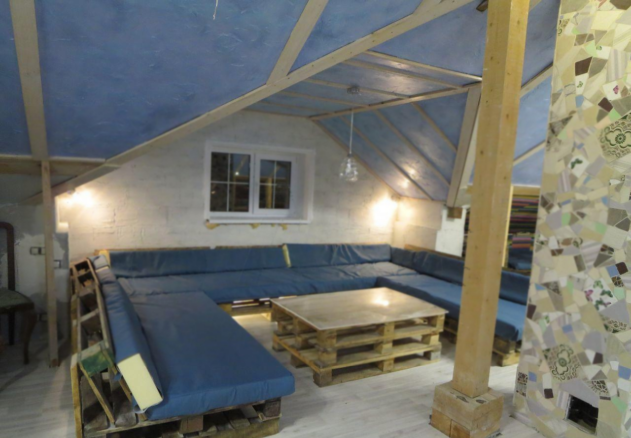 3 этаж: лофт с электрической сауной, лаундж зоной, небольшой кухонной зоной, теннисным столом, санузлом.