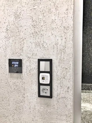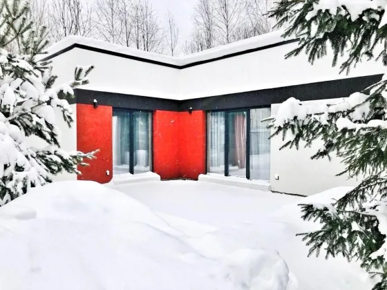 Коммуникации: Электричество 220/380, 30кВт. Вода холодная/горячая (скважина, бойлер). Отопление водяное (электрокотел), теплые полы по всей площади дома. Канализация автономная (септик Топас). Отдельный вход в котельную, с улицы.