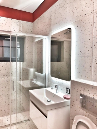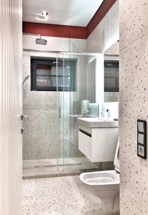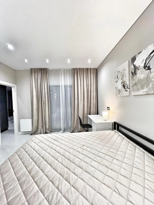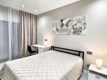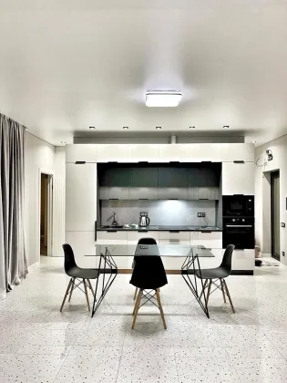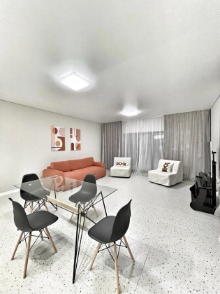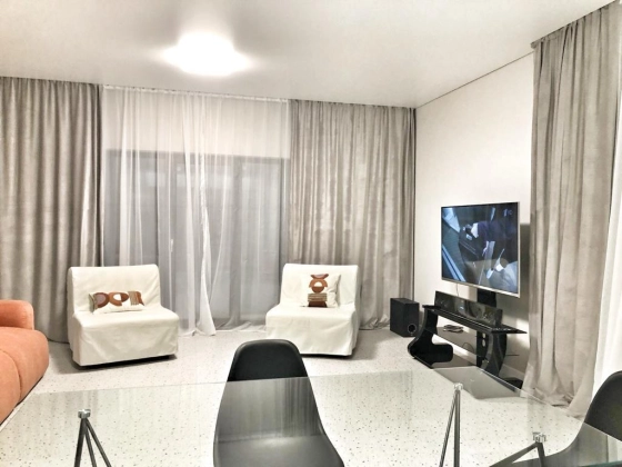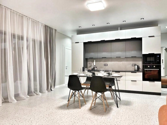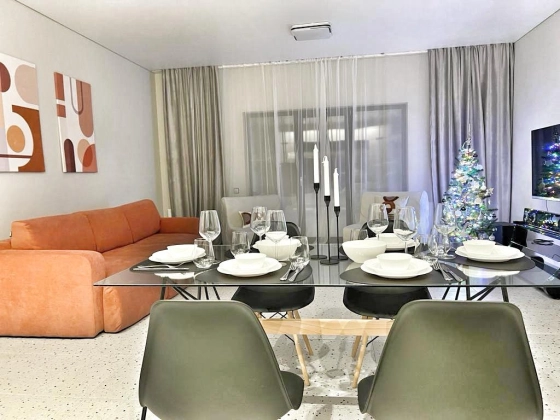 Продуманная планировка: совмещённая кухня-гостиная, изолированная спальня, санузел, хаммам, постирочная. Выход на террасу из каждой комнаты. Панорамные окна.