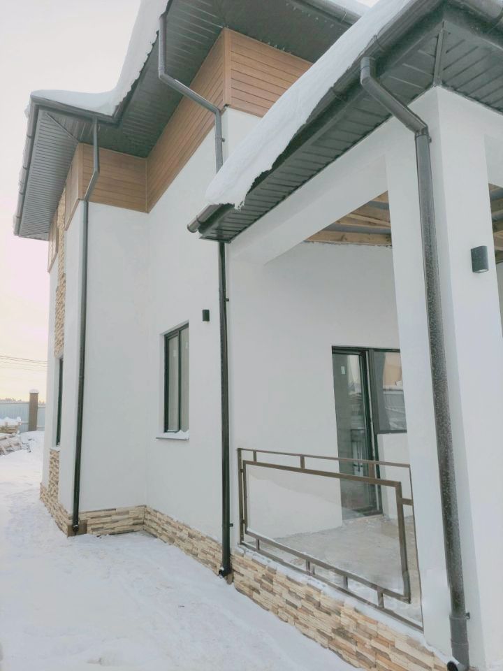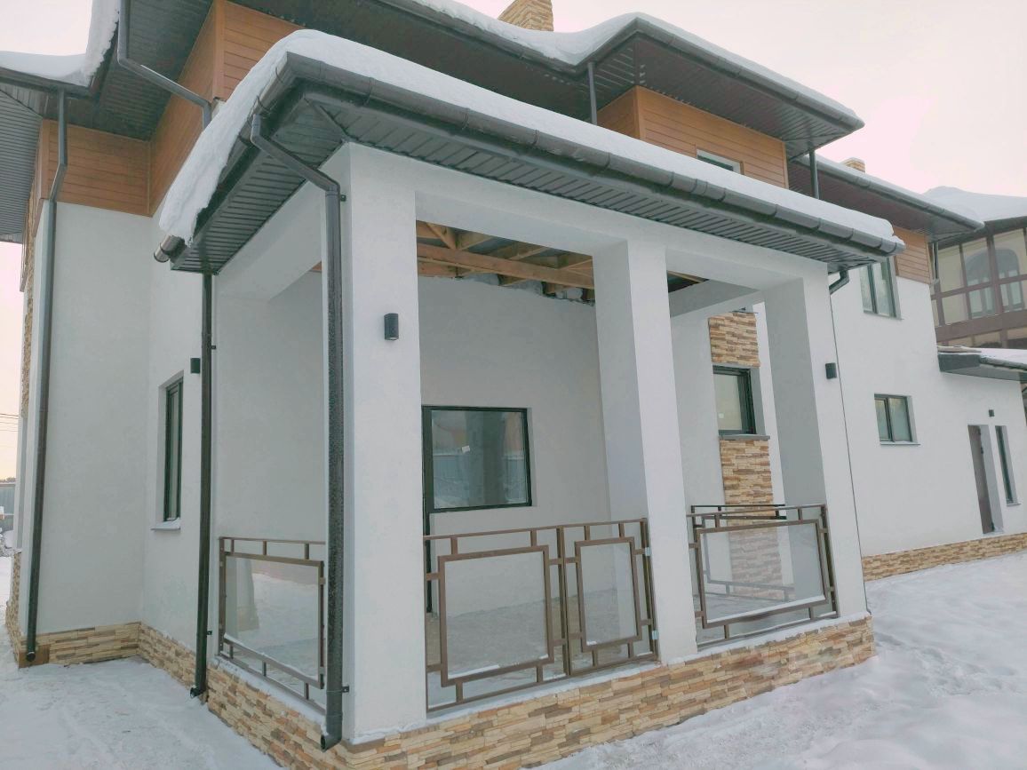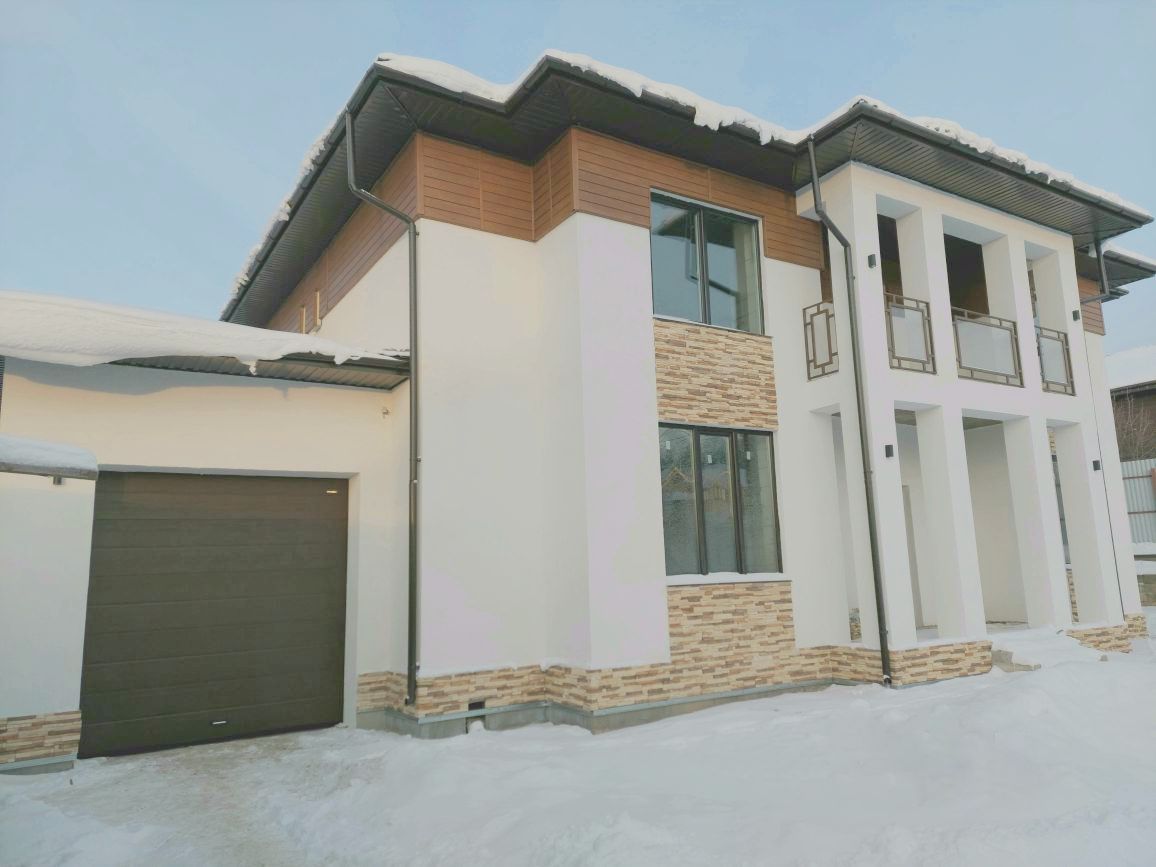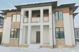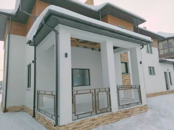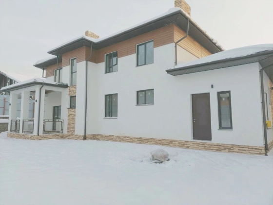 Коттедж 318,1 кв. м под отделку в закрытом охраняемом коттеджном поселке Благовещенка. Дом 2021 года постройки из газоблоков, перекрытия плиты на ленточном фундаменте, окна REHAU, фасадная система Ceresit. Дом строился по индивидуальному проекту с авторским надзором. 2 этажа.