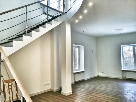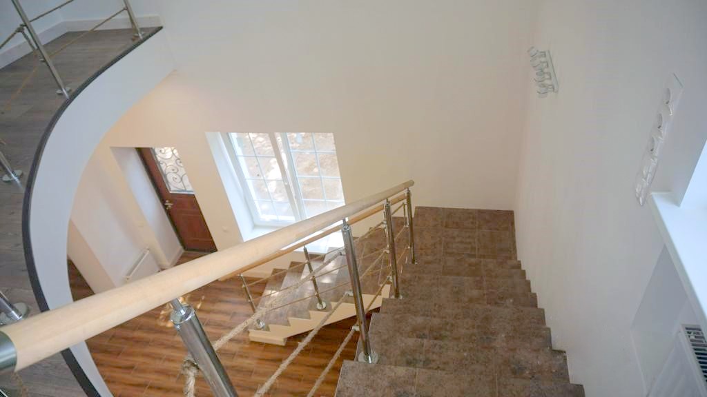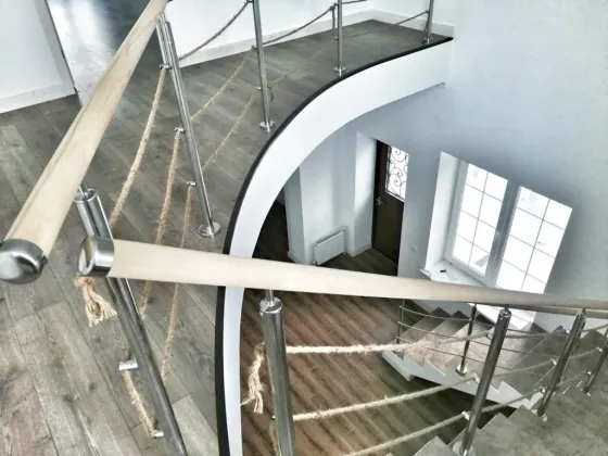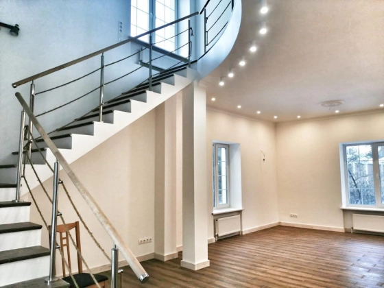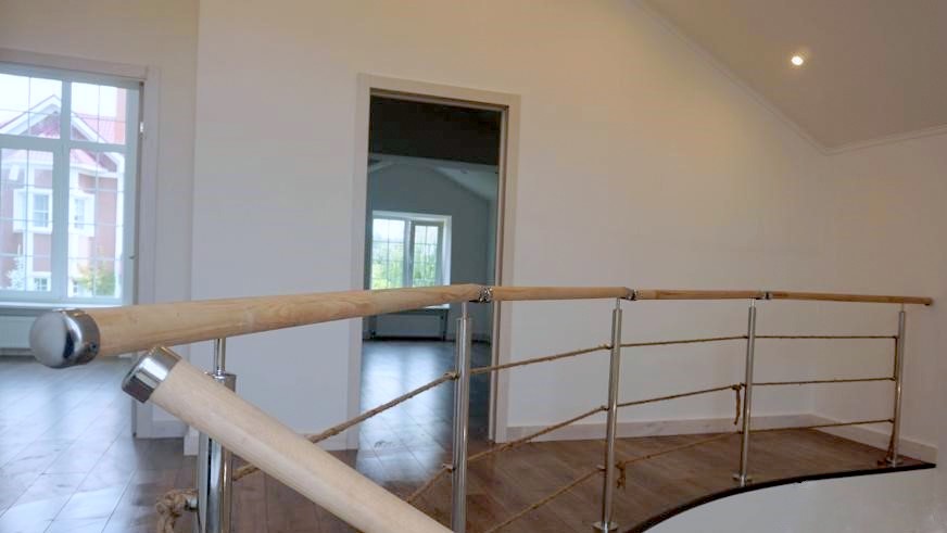 1 этаж: кухня, большая гостиная, прихожая, гардеробная и ванная.