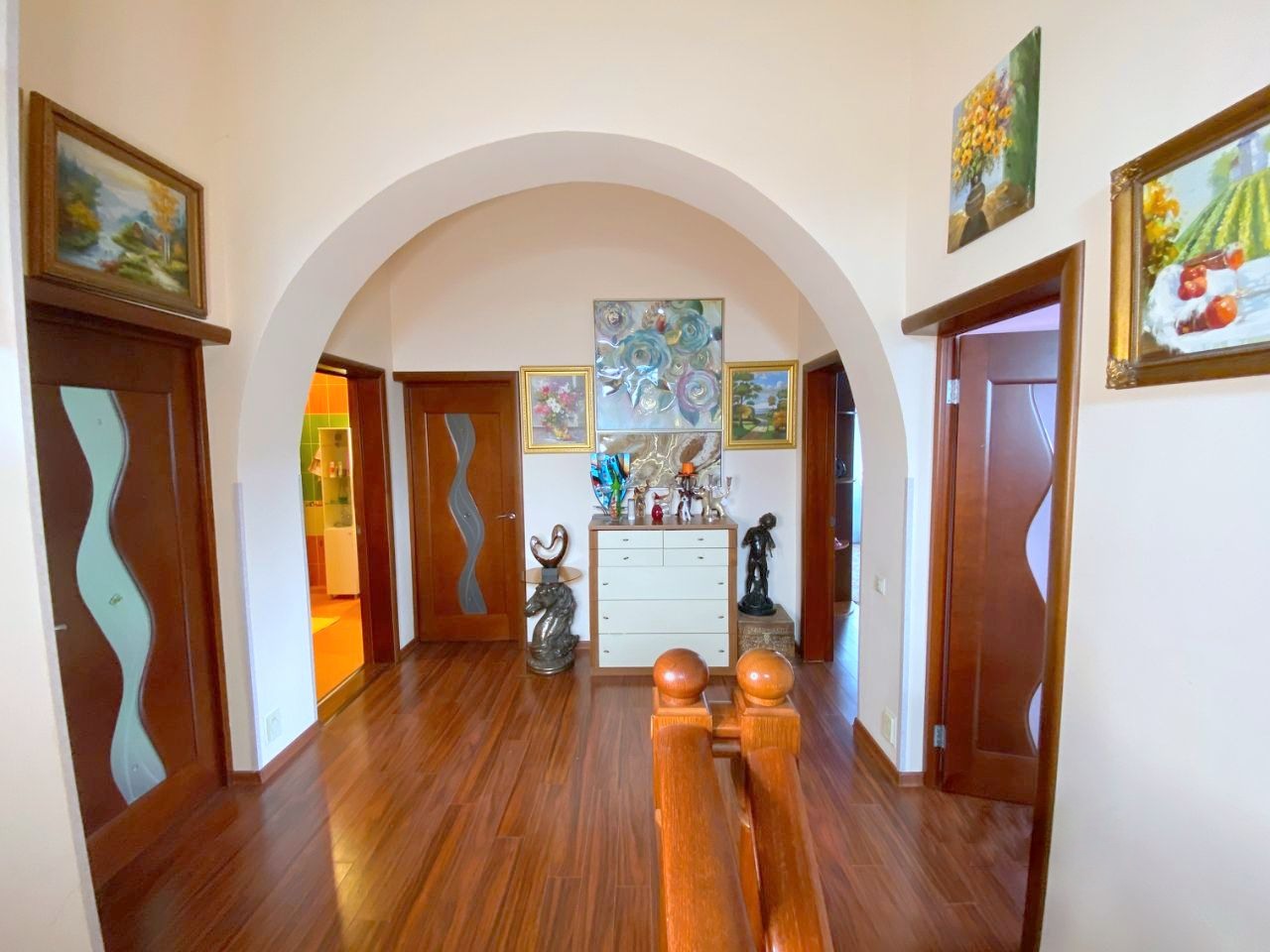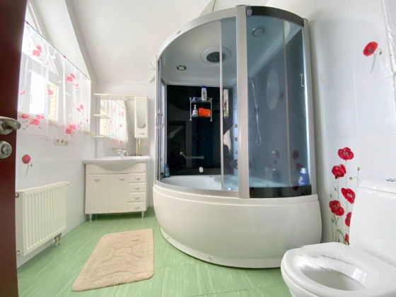 Коммуникации: газ – магистральный, электричество - 15 кВт, водоснабжение – скважина, канализация – септик, связь - оптико-волоконный интернет, плитка с подогревом, установлена система центрального пылеудаления (встроенный пылесос BEAM).